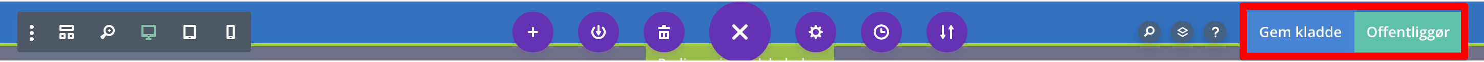 Så er vi komme til “Gem kladde” og “Offentligør”, det ligger lidt i navnet, men Gem kladde bruges, når man ikke vil udgive sin side endnu, og Offentligør bruges, når man vil offentliggøre den. Efter man har trykket offentliggør, laver teksten sig om til at hedde “Gem”. Det er en god ide at gemme din side hele tiden, når du redigerer i den, så du ikke mister dit arbejde.