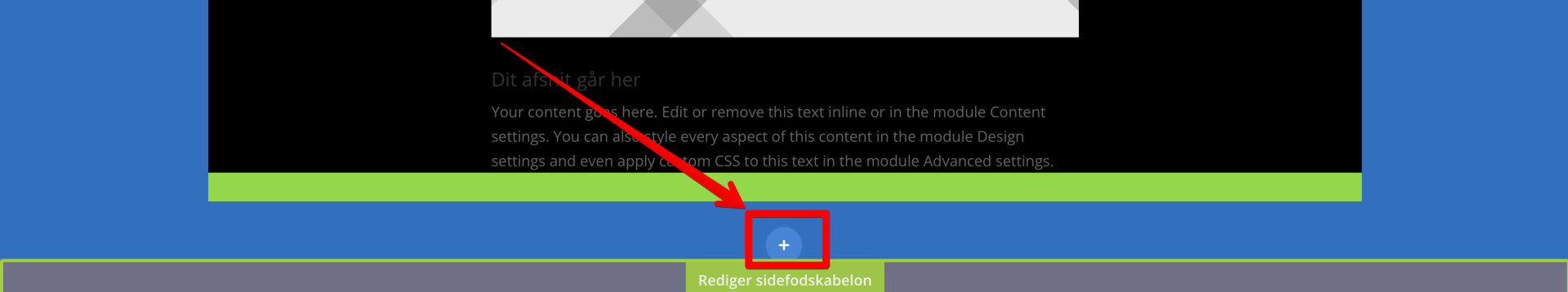 Del din hjemmeside op i flere sektioner, så du kan sætte en ny farve baggrund på din sektion og en ny sektionsoverskrift. Tryk på det lille blå plus for at lave en ny sektion.