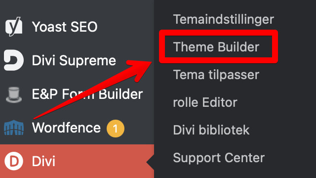 Når du har klikket på Divi, skal du vælge “Theme Builder”