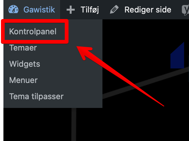 Det eneste din hjemmeside mangler nu er en header og en footer. En Header er den øverste del på din hjemmeside og en footer er den nederste del. De bruges til at have en menu i headeren og i footeren har man kontaktinformation. Start med at gå til dit kontrolpanel.