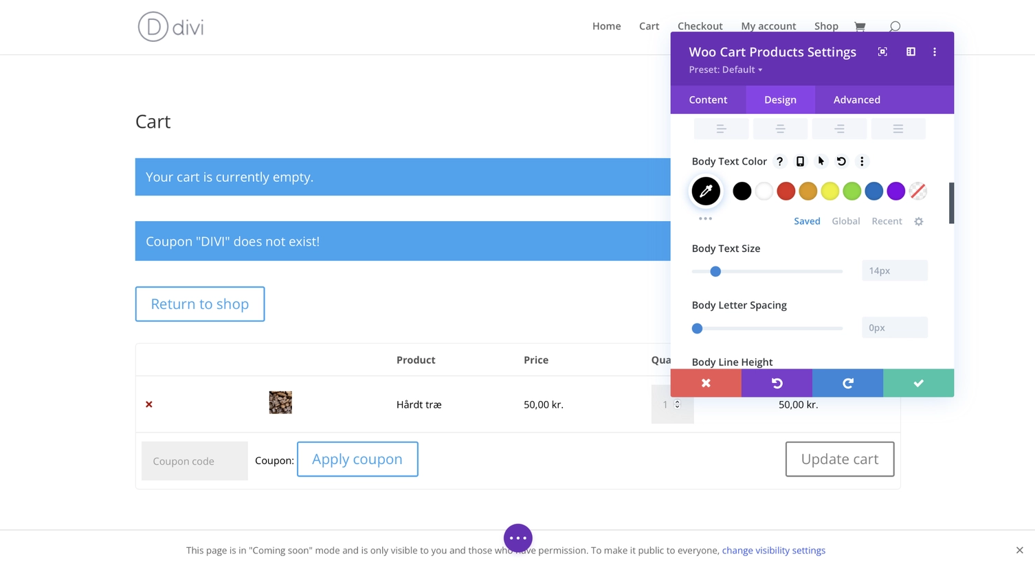 - Brug Divi Builder til at designe unikke sider, som forsiden, produktsider og indkøbskurv