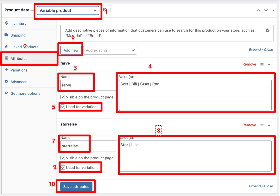 Hvis du sælger produkter med variationer (som farve eller størrelse), skal du konfigurere dette.